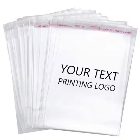 عبوة شفافة للملابس بشعار مخصص ، ختم ذاتي اللصق ، أكياس سيلوفان شفافة مع مادة لاصقة